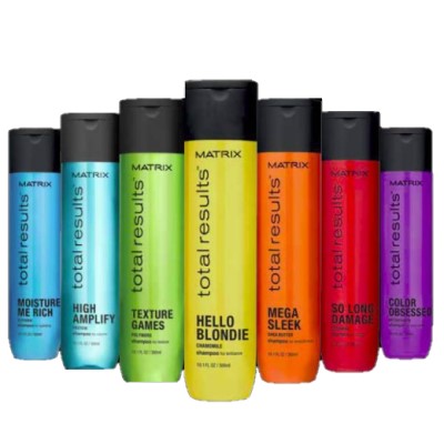 Die Total Results-Linie von Matrix bietet zielgerichtete Lösungen für verschiedene Haarprobleme, wie Feuchtigkeitsmangel, Frizz oder Farbverlust.
