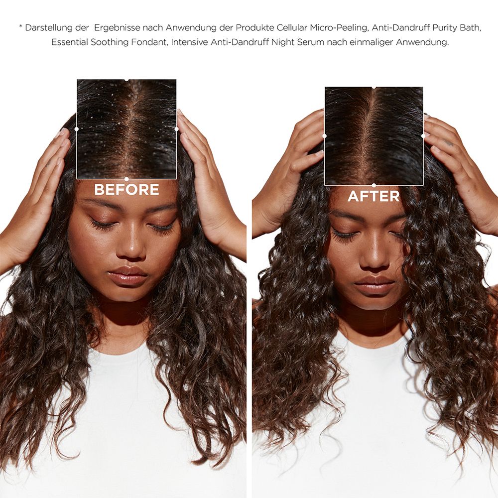 Das Kérastase Symbiose Sérum Cellulaire Nuit stärkt die Kopfhautbarriere innerhalb von 8 Stunden über Nacht und reduziert sichtbare Schuppen – ohne Sulfate oder Silikone. Bifidus Extrakt beruhigt die sensible Kopfhaut und unterstützt das natürliche Mikrobiom. Pirocton-Olamin und Salicylsäure entfernen sofort Schuppen sichtbar und reduzieren langfristig die Bildung neuer Schuppen.