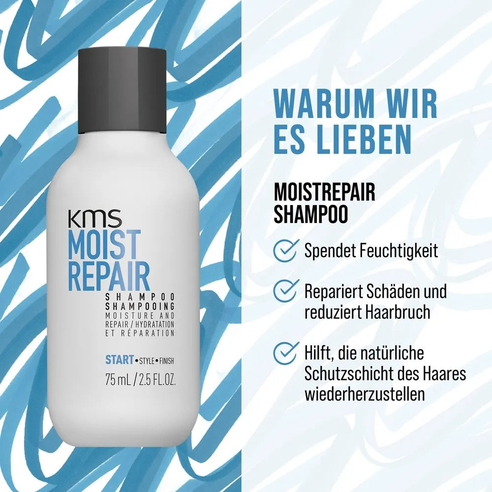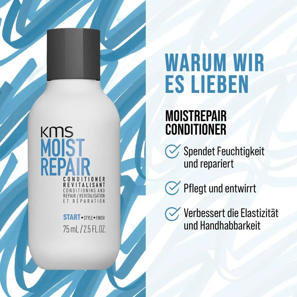Das KMS Moistrepair Set spendet dem Haar Feuchtigkeit und regeneriert Haarbruch.