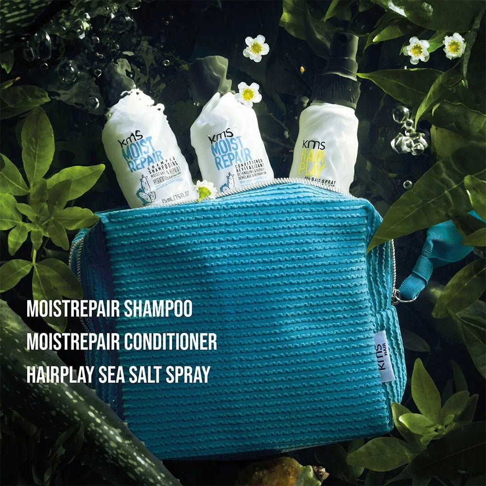 KMS Moistrepair Travelset - Shampoo 75 ml + Conditioner 75 ml + Sea Salt Spray 75 ml + Kosmetiktasche
