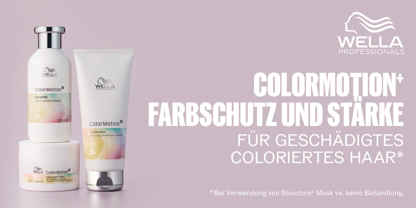 Between colorings, hair goes through a lot: washing, styling, and external influences (UV rays, wind, environmental pollution) stress the sensitized hair fiber. Regular use of the ColorMotion+ care program improves the quality of colored hair in three areas that are particularly important for colored hair: color protection, shine, and strengthening. Excellent hair quality for beautiful hair color.