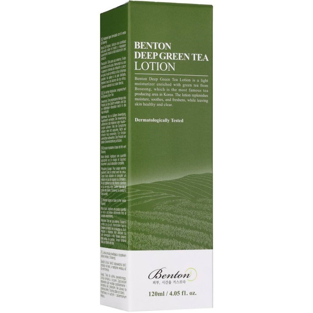 - Contains freshly brewed green tea from Boseong: The texture of Benton Green Deep Tea Lotion is made from natural ingredients and contains over 50% fresh green tea and green tea extracts.