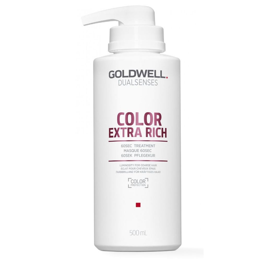 The Goldwell Dualsenses Color Extra Rich 60 Sec Treatment is an ultra-fast intensive treatment for strong, colored, damaged hair. The hair color is protected and the hair is restructured. The treatment nourishes intensively and protects the color from fading. For visibly more color brilliance.