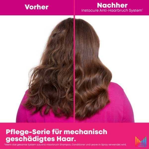 Insta Cure anti-breakage conditioner, enriched with liquid proteins, cleanses and strengthens hair, giving it suppleness.