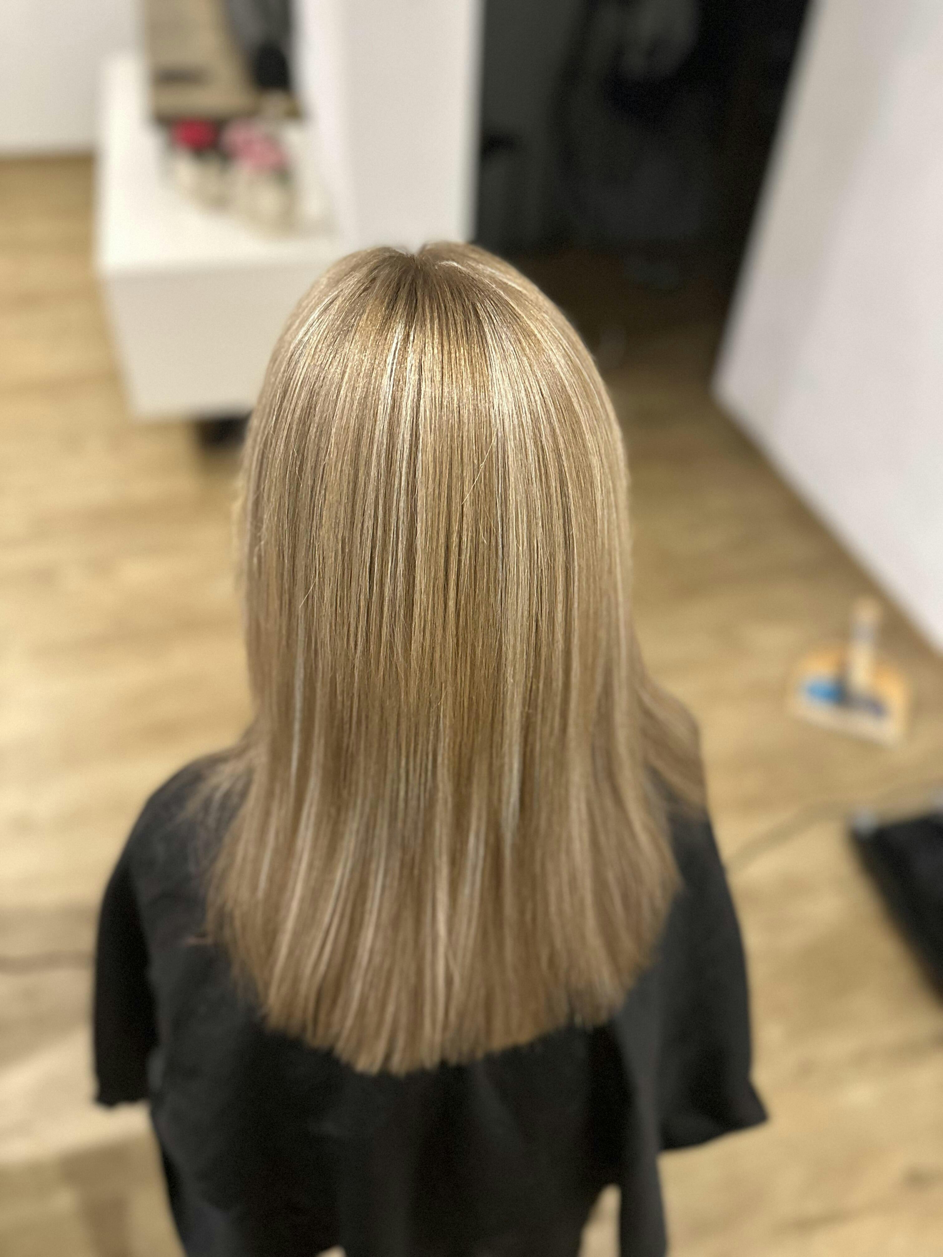 - Lightening: Mid-lengths and ends - Apply the color mix only to the lengths and ends. Stay about 2 cm away from the scalp.