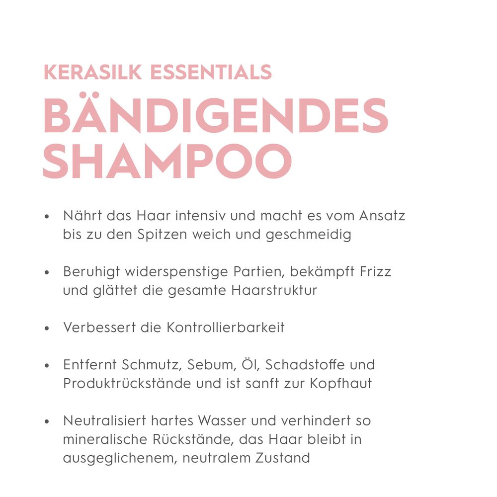 • Les Kerasilk Essentials sont des produits de nettoyage et d'entretien doux. La gamme Essentials se compose de shampoings et d'après-shampooings qui préparent vos cheveux à des soins et un coiffage riches. Tous les produits Kerasilk Essentials sont sans silicone. Tous les shampooings sont sans sulfate. Convient à tous les besoins et types de cheveux.
