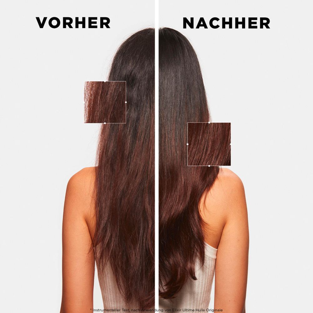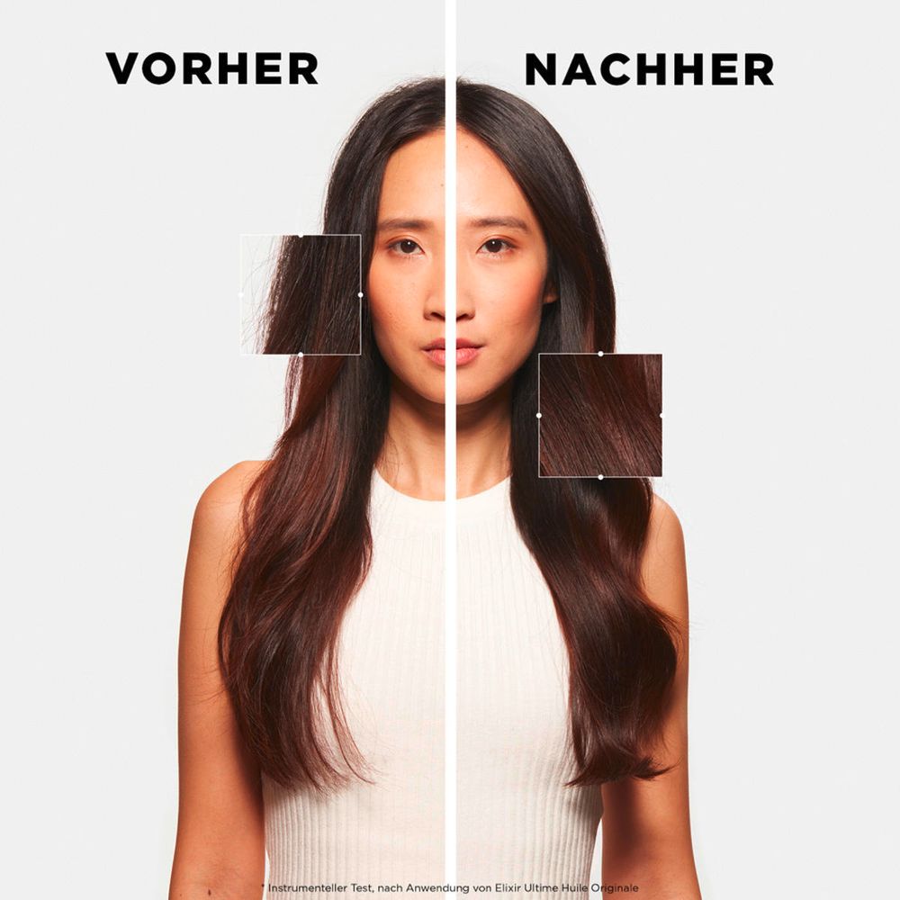 Selon la longueur de vos cheveux, appliquez 2 à 4 pompes de Kérastase Elixir Ultime L'Huile Journée de la Femme sur les longueurs et pointes des cheveux secs ou essorés. Ne pas rincer et coiffer comme d'habitude.